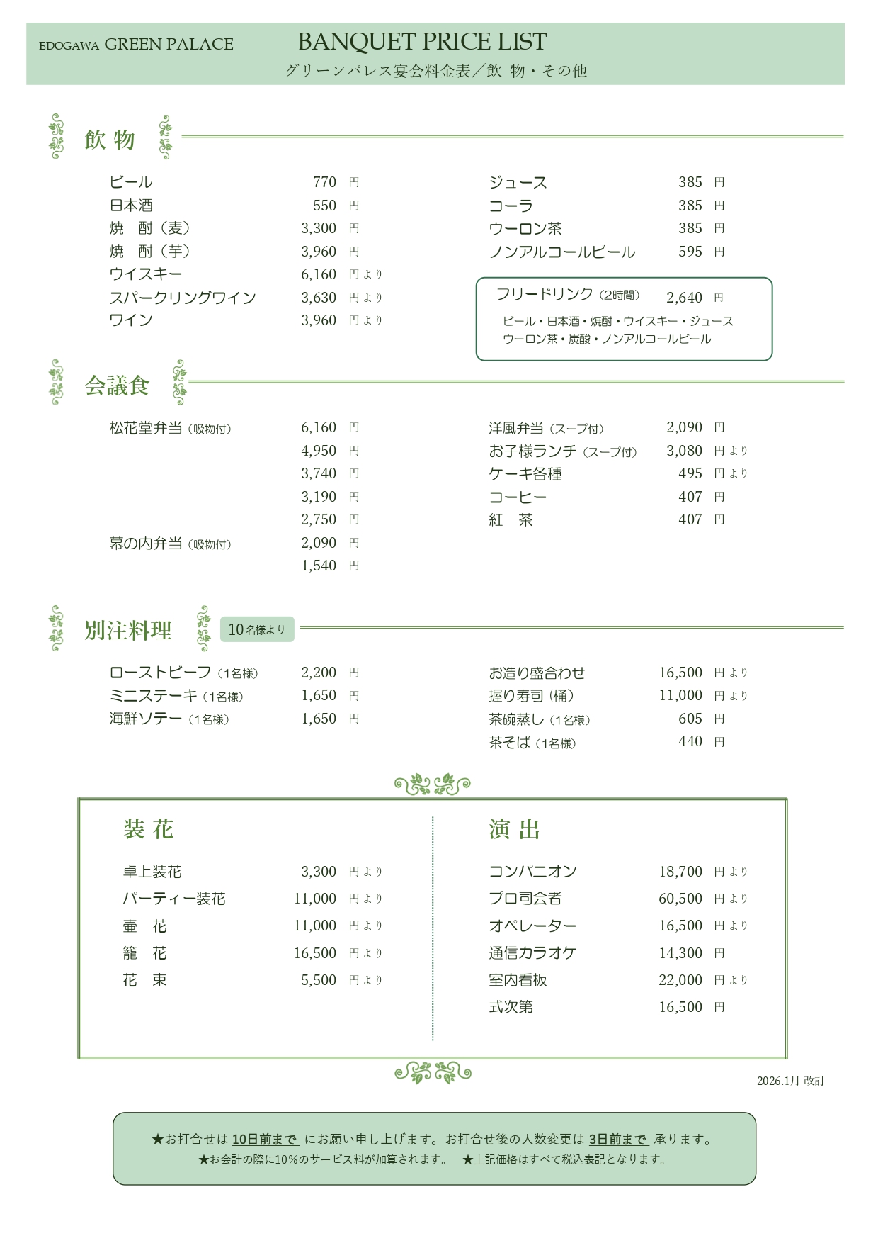 宴会場へのご飲食のお持込はご遠慮いただきます